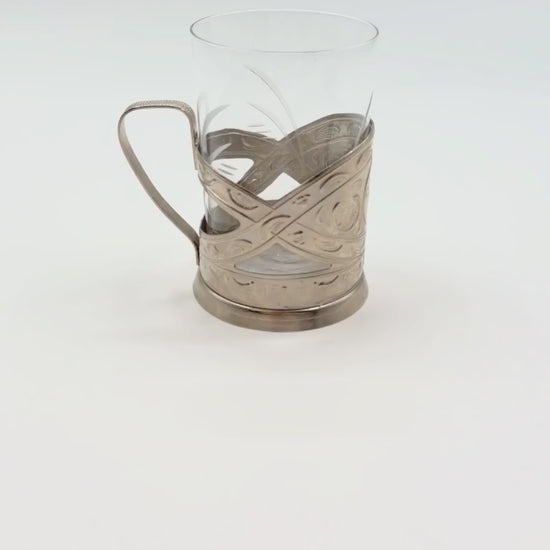 Add a touch of Nordic charm to your home with this elegant Vintage Scandinavian Glasses in Metal Holder. A true retro tableware classic, this set combines clean Scandinavian design with practical functionality.