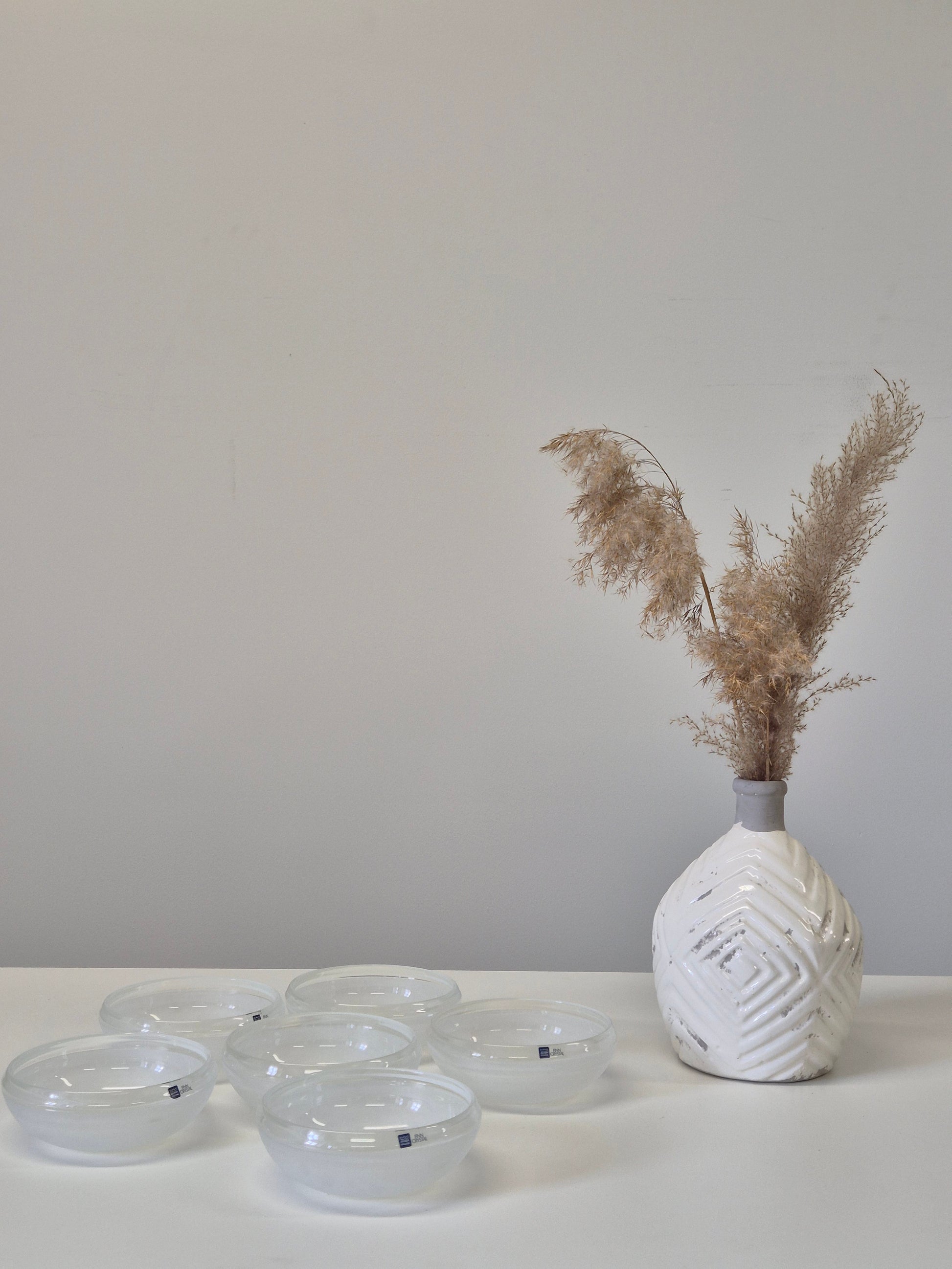 This vintage Nuutajärvi Lumikuru dessert bowl showcases the timeless elegance of Finnish glass design. Crafted by the renowned Nuutajärvi glassworks, the Lumikuru pattern features delicate, textured details inspired by natural ice formations. Perfect for serving desserts, fruits, or as a decorative accent, this bowl brings a touch of Scandinavian sophistication and mid-century charm to your table or display.