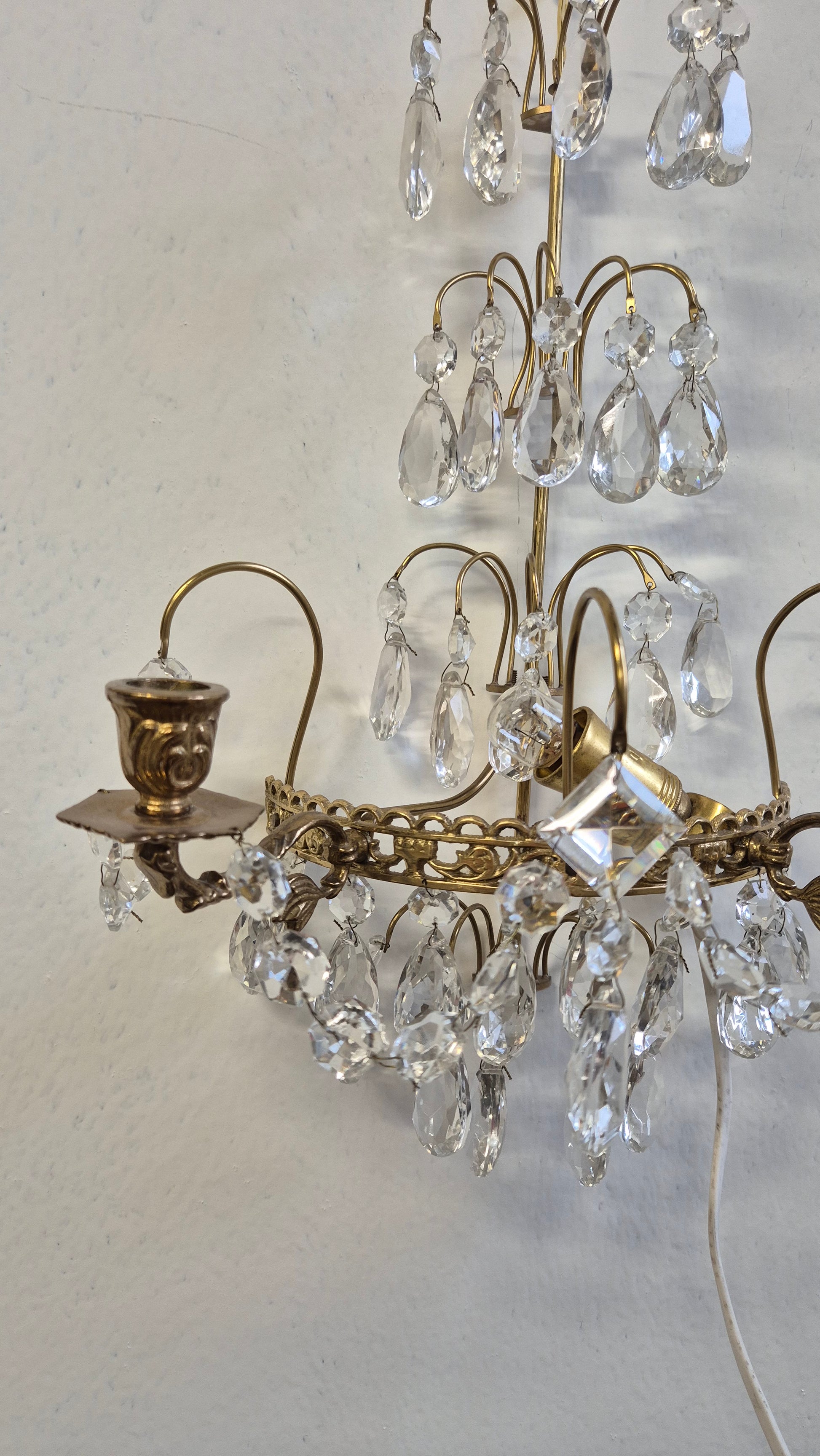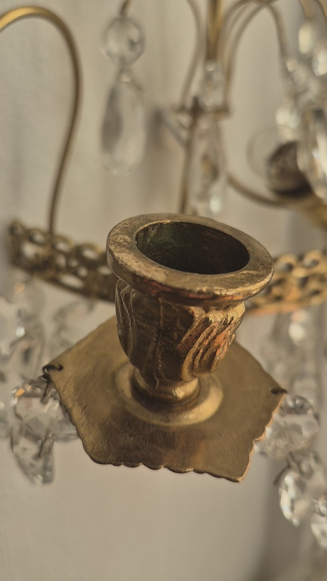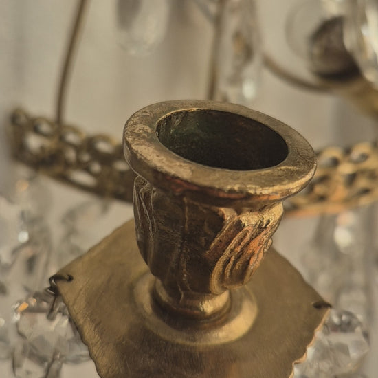 Vintage Crystal & Brass Wall Sconce with Candle Holders (Set of Two )