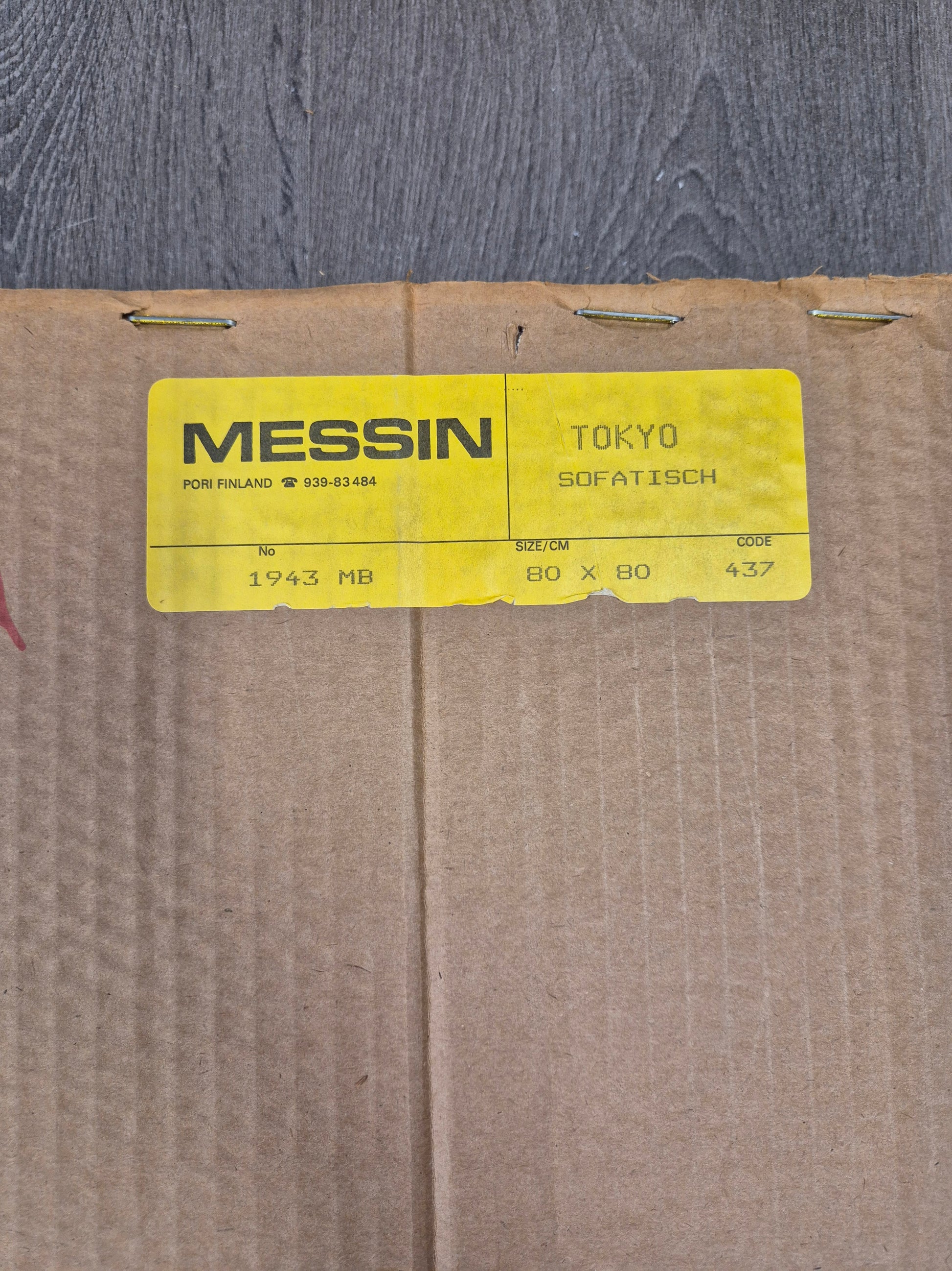 A rare and striking vintage table named Tokyo, produced in Finland by Messin Oy and inspired by Japanese modernist design. This piece has been unused and stored for over 50 years in its original factory packaging, making it an exceptional find for collectors and design enthusiasts.