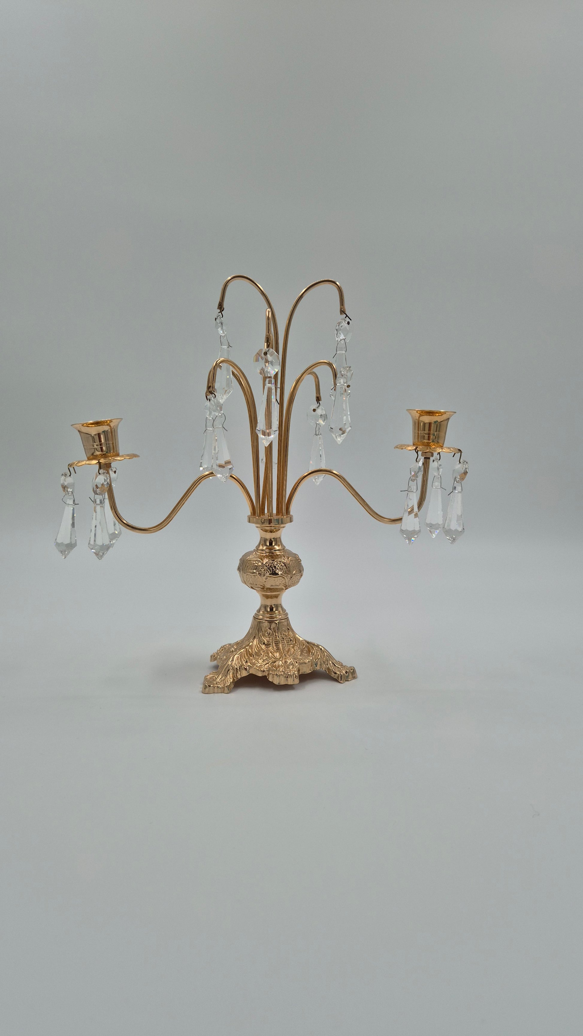 A stunning vintage two-arm crystal candelabra with elegant gold-plated accents. This piece combines classic Scandinavian design with timeless charm, making it perfect as a centerpiece, home décor, or collector’s item. The crystal and gold plating show natural signs of age and use, adding authentic vintage character.