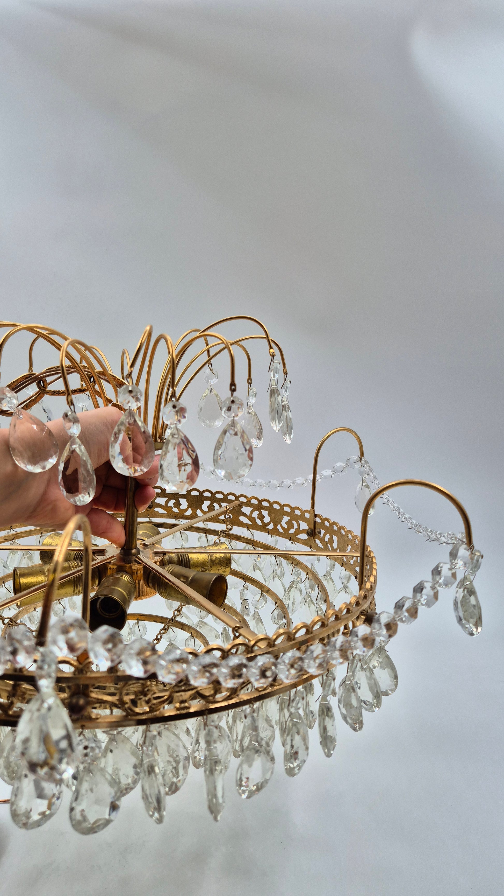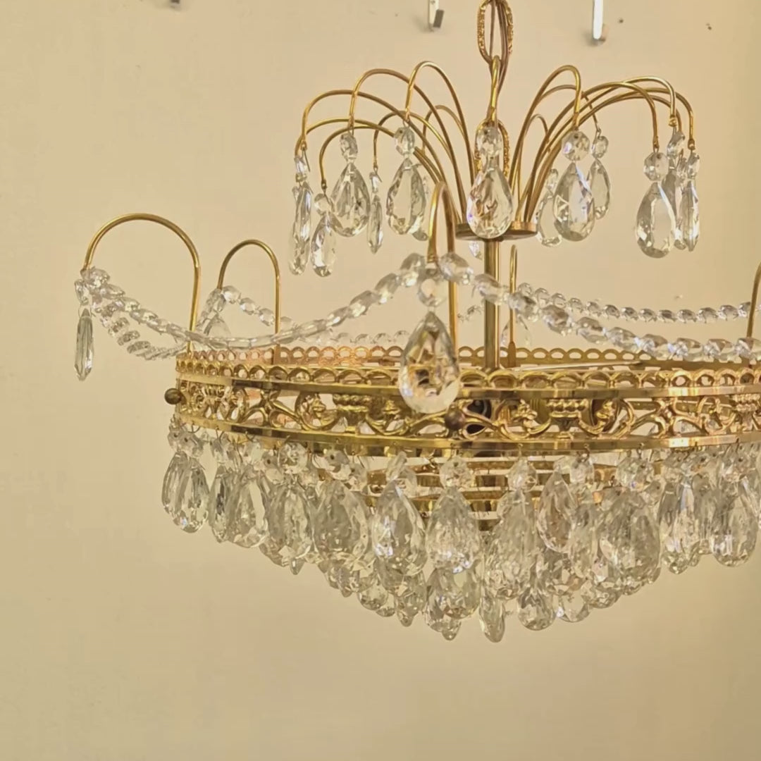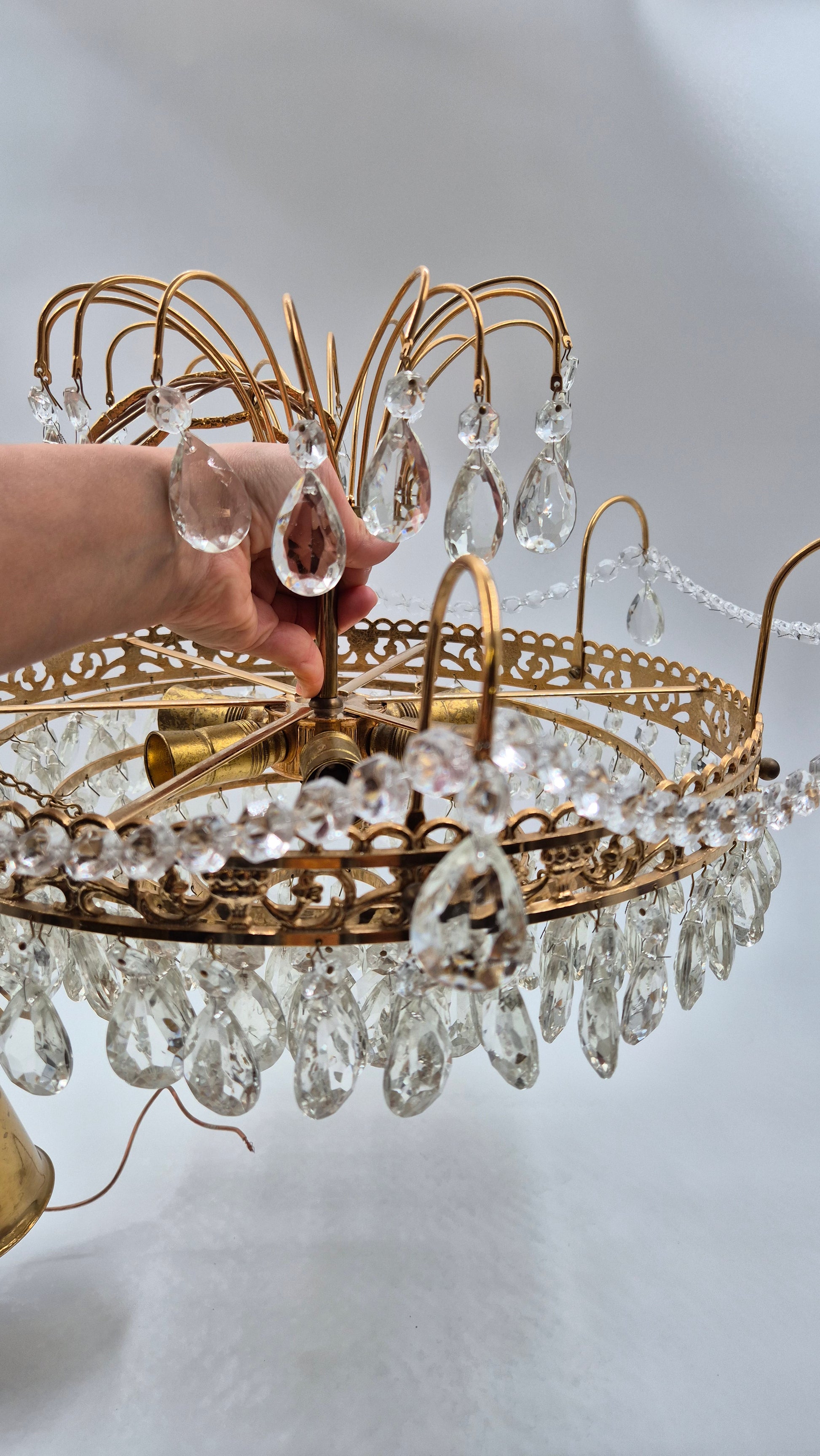 This large crystal chandelier features a timeless and elegant design, perfect for adding sparkle and sophistication to any room. The faceted crystal elements beautifully reflect light, creating a warm, inviting atmosphere. Its generous size (Height: 71 cm, Diameter: 47 cm) makes it a striking centerpiece for a dining room, living area, foyer, or bedroom.