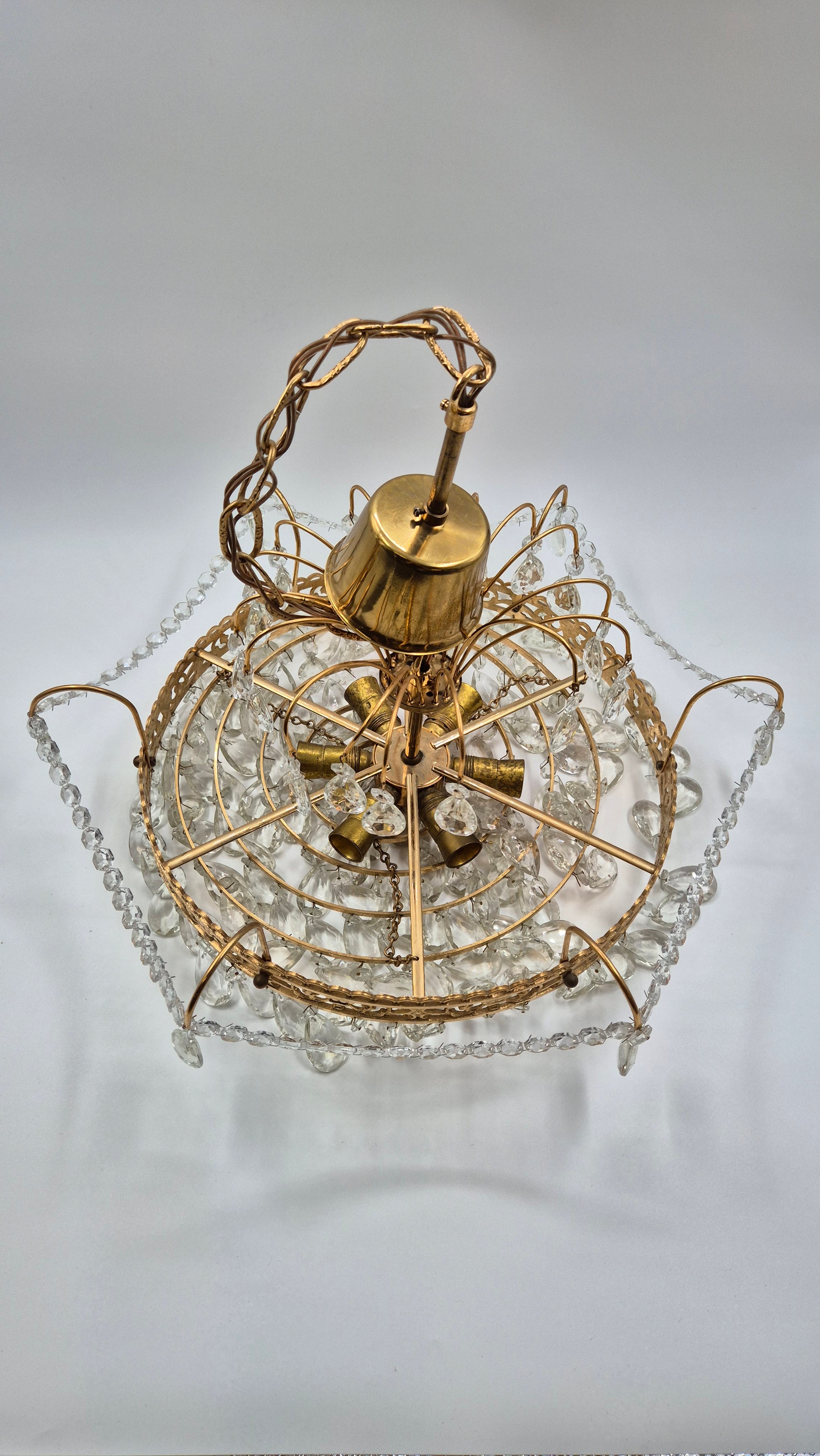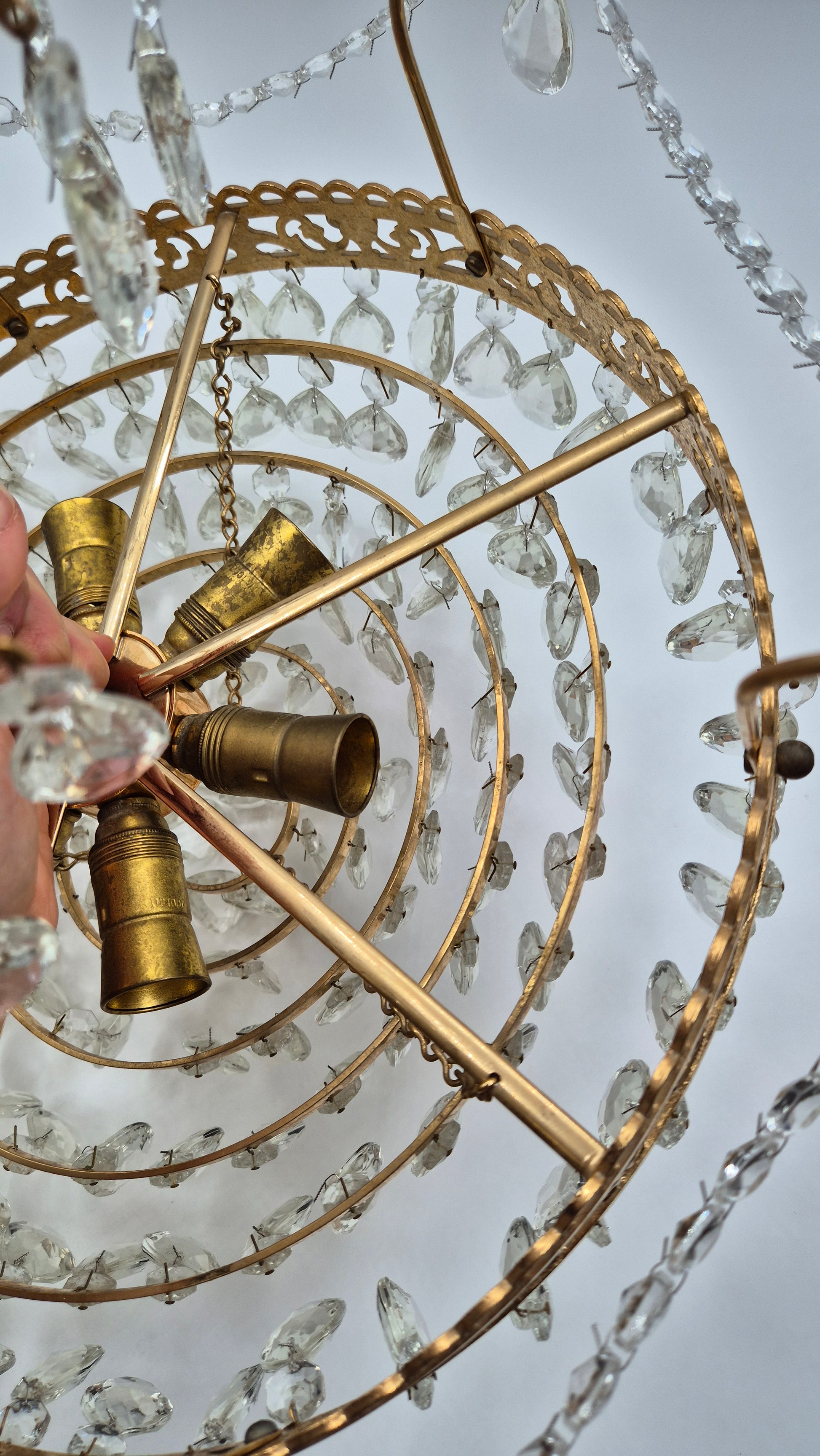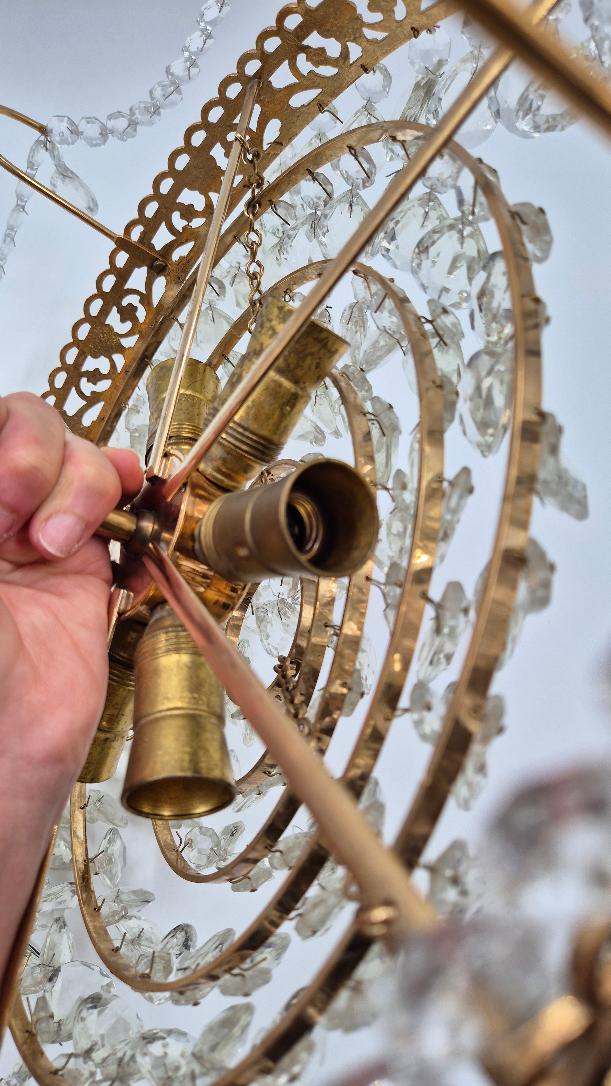 This large crystal chandelier features a timeless and elegant design, perfect for adding sparkle and sophistication to any room. The faceted crystal elements beautifully reflect light, creating a warm, inviting atmosphere. Its generous size (Height: 71 cm, Diameter: 47 cm) makes it a striking centerpiece for a dining room, living area, foyer, or bedroom.