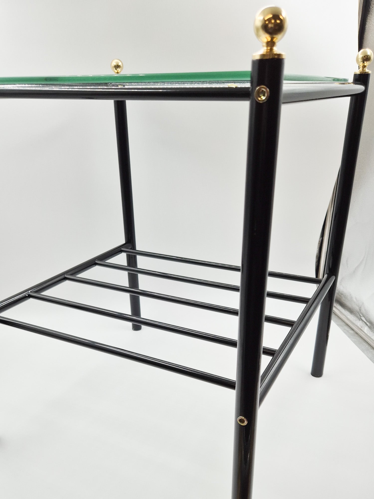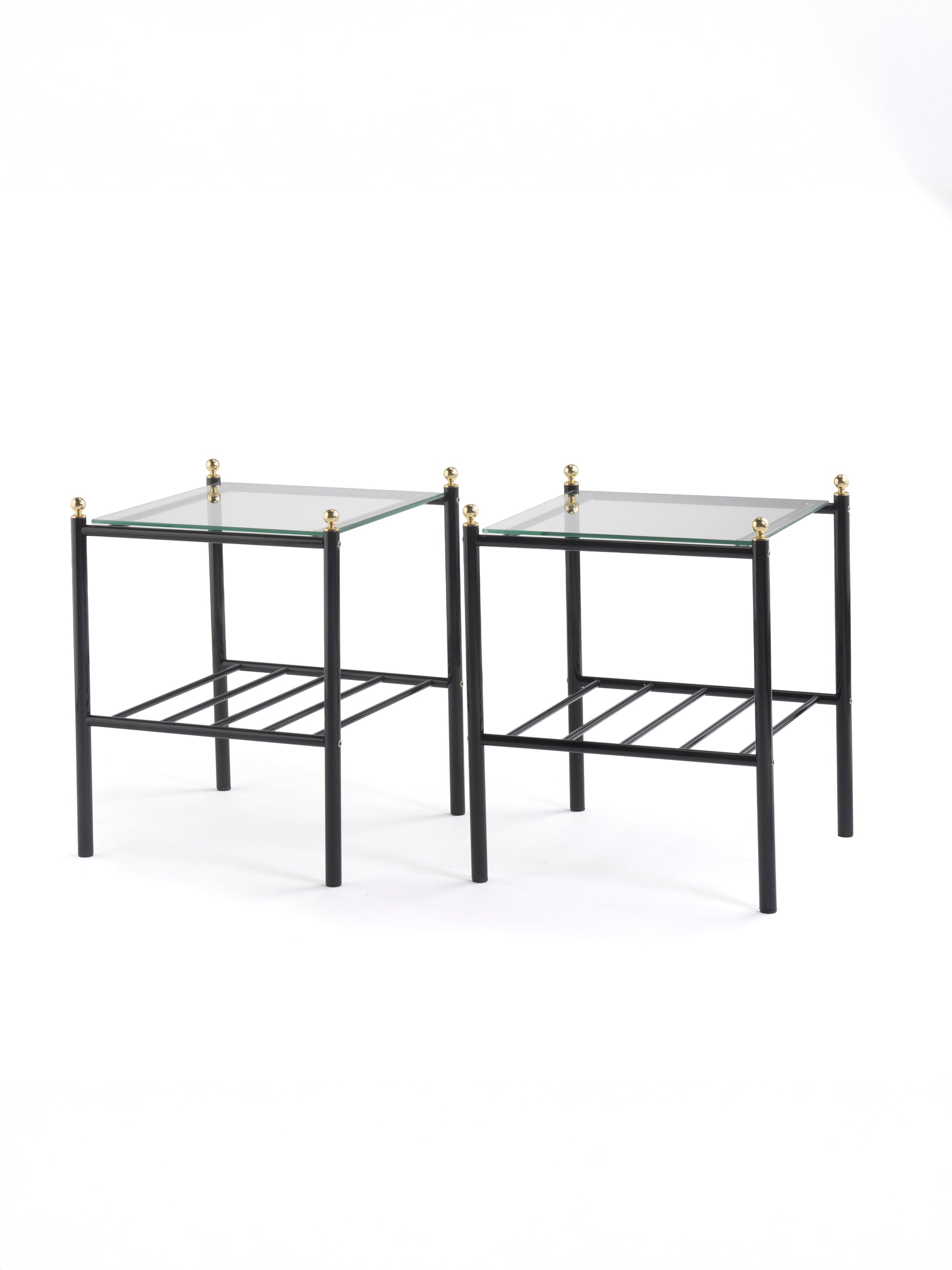 Vintage Finnish Side Tables (Pair) - Black Metal, Glass & Brass Details