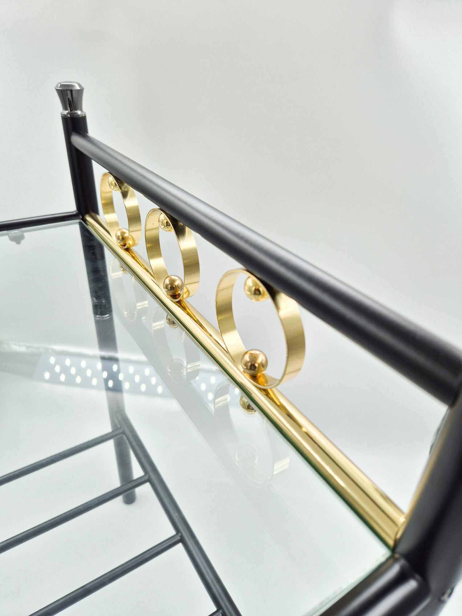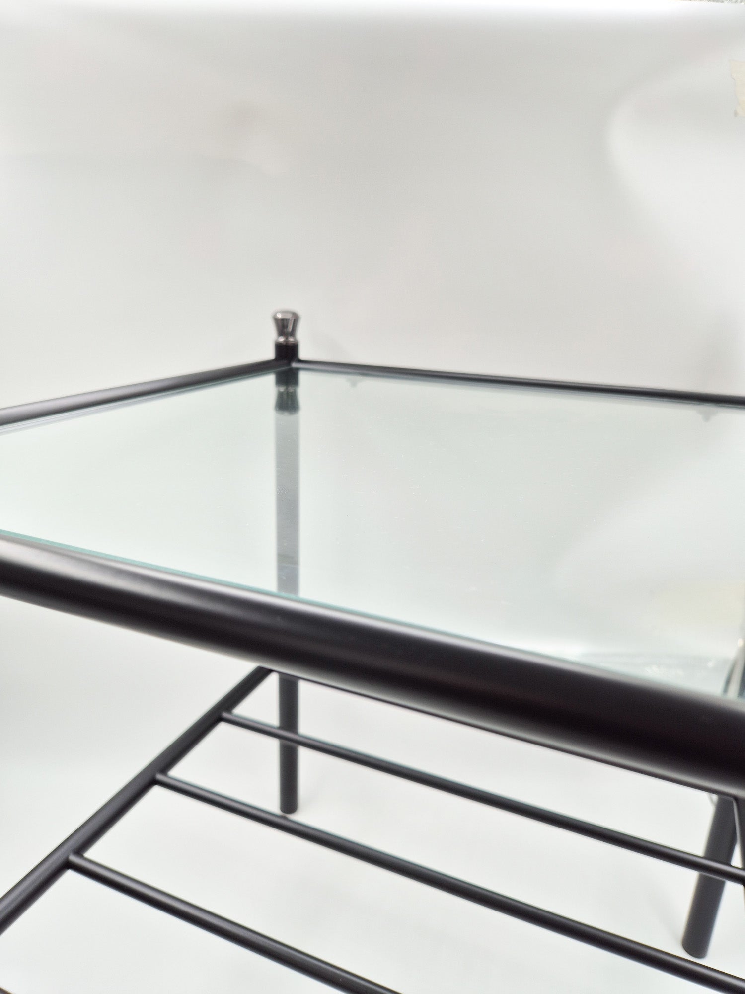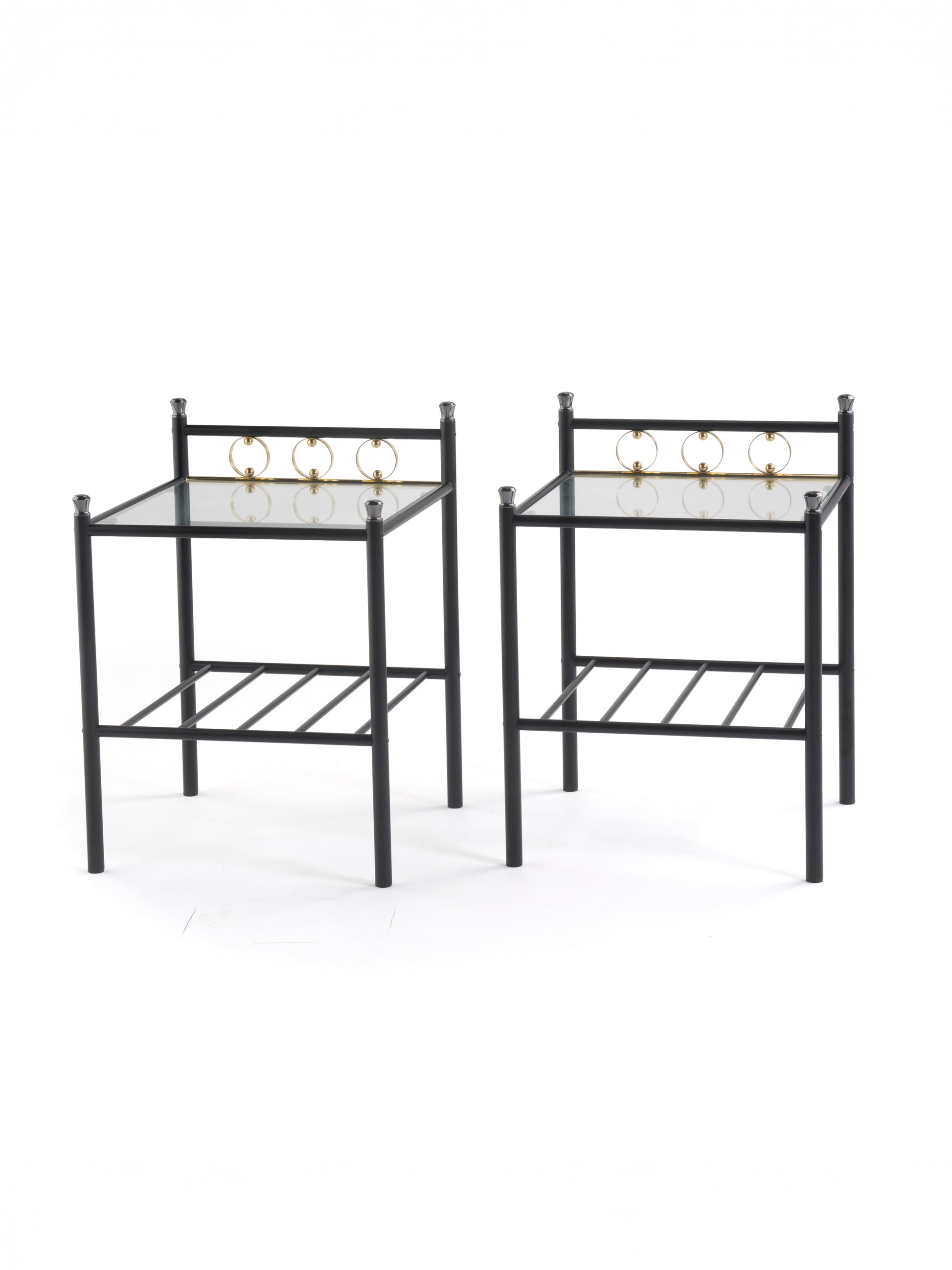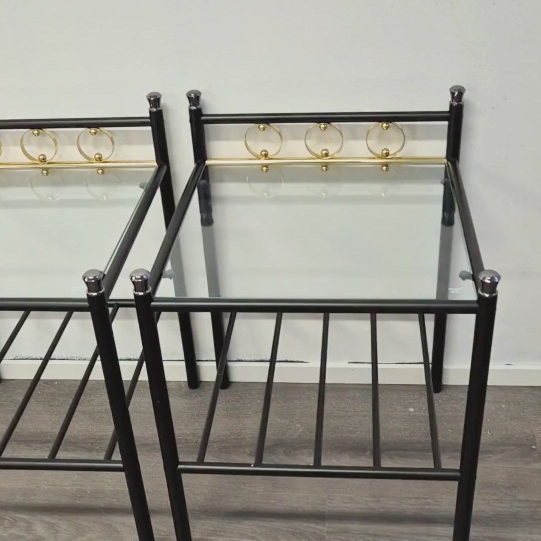 Vintage Finnish Side Tables (Pair) – Black Metal, Glass & Brass