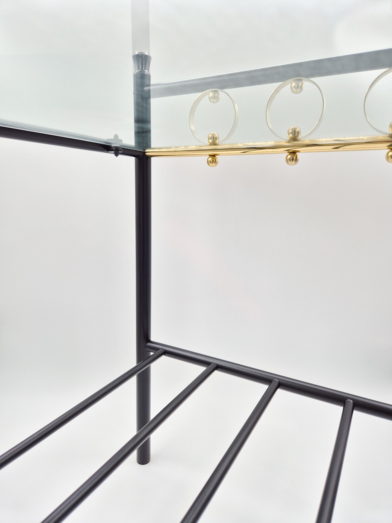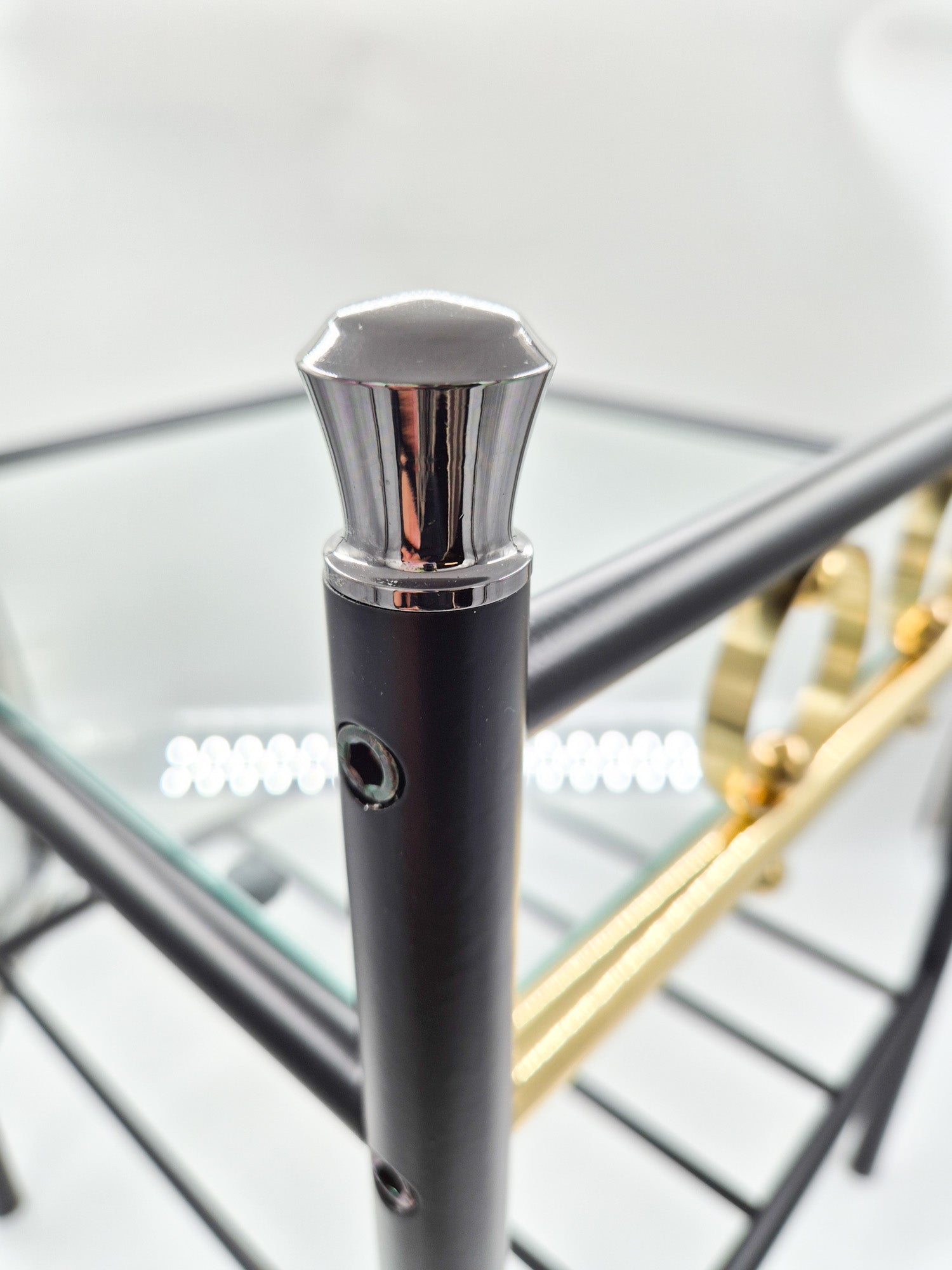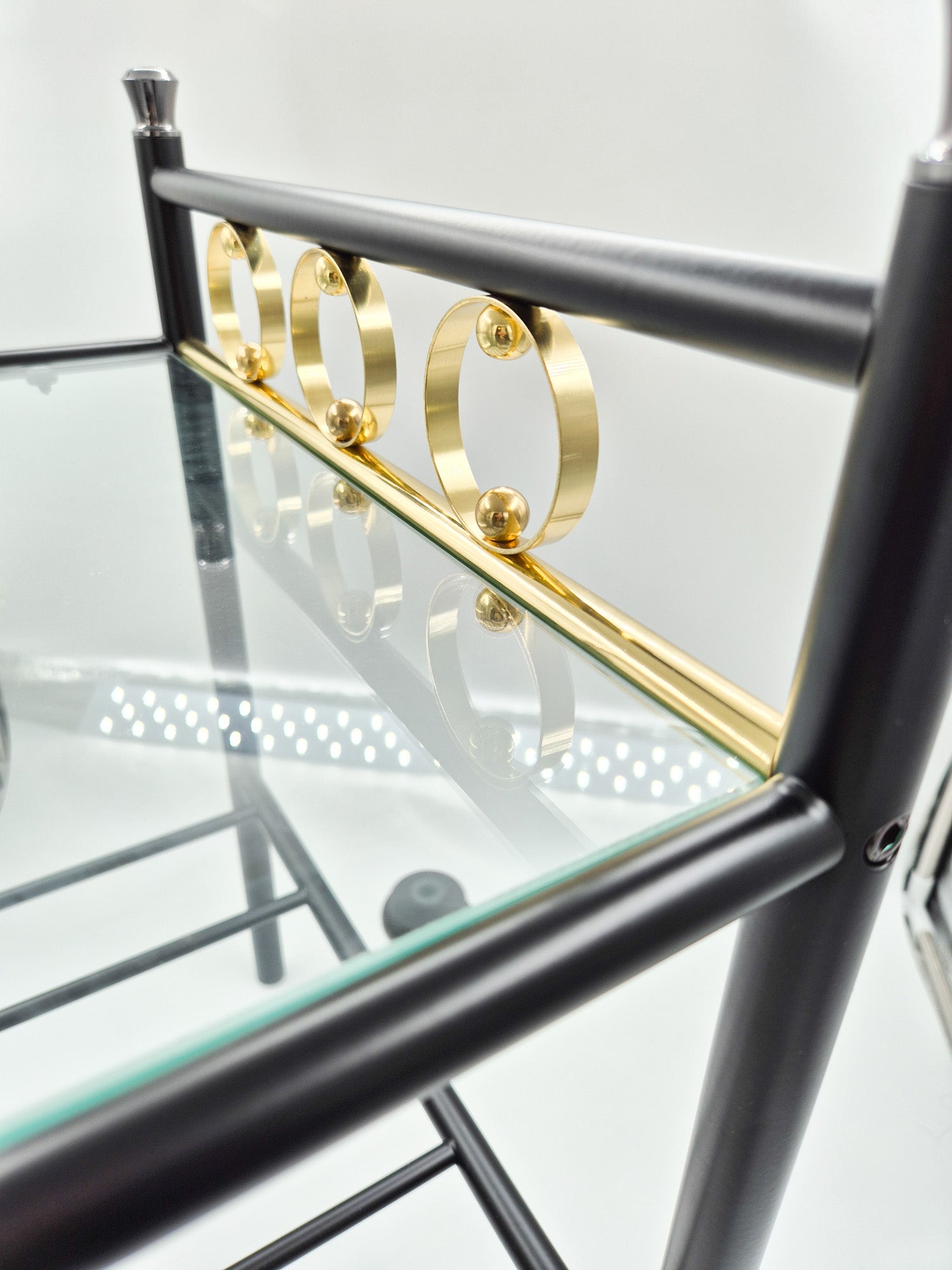 Vintage Finnish Side Tables (Pair) – Black Metal, Glass & Brass