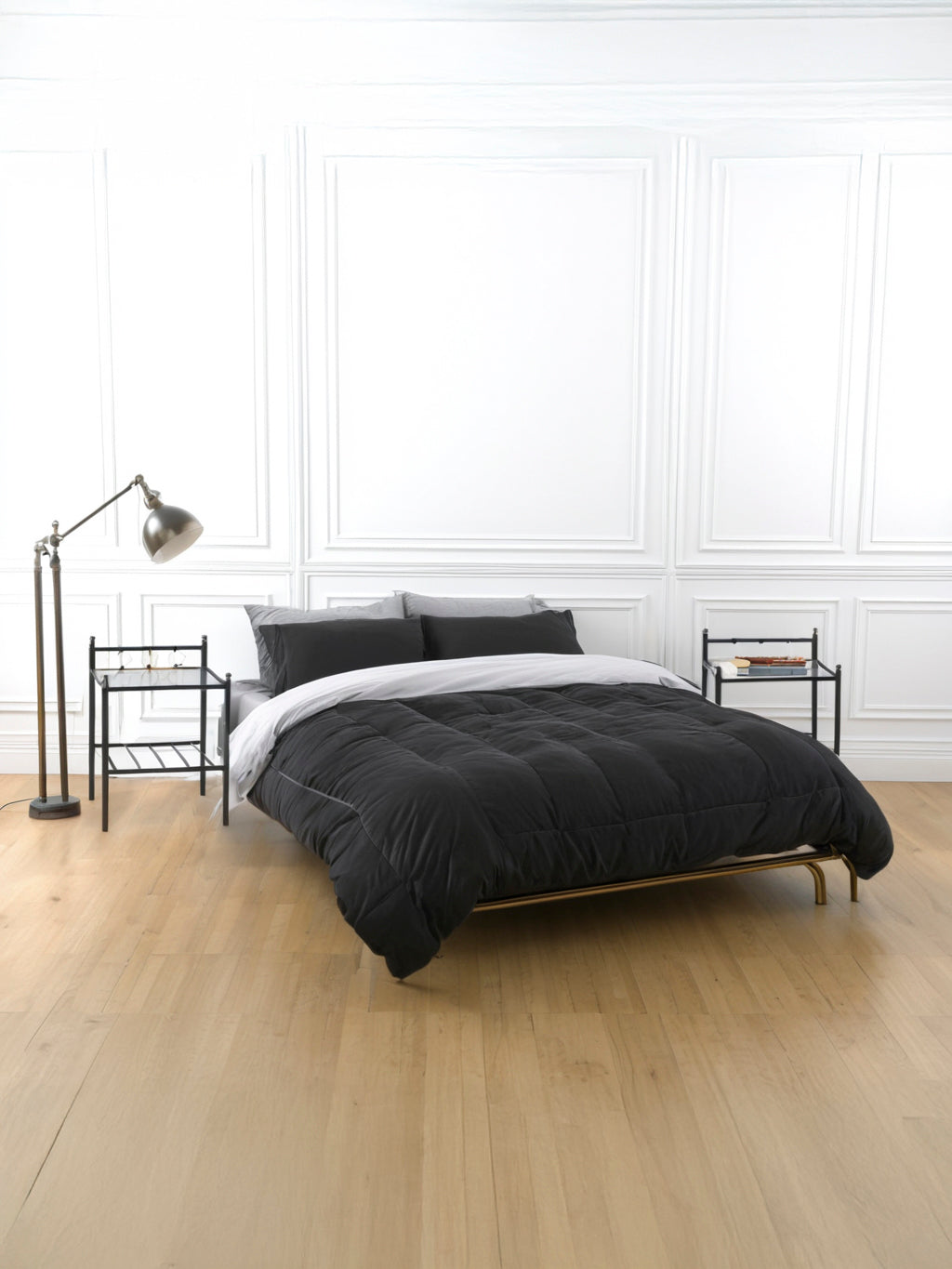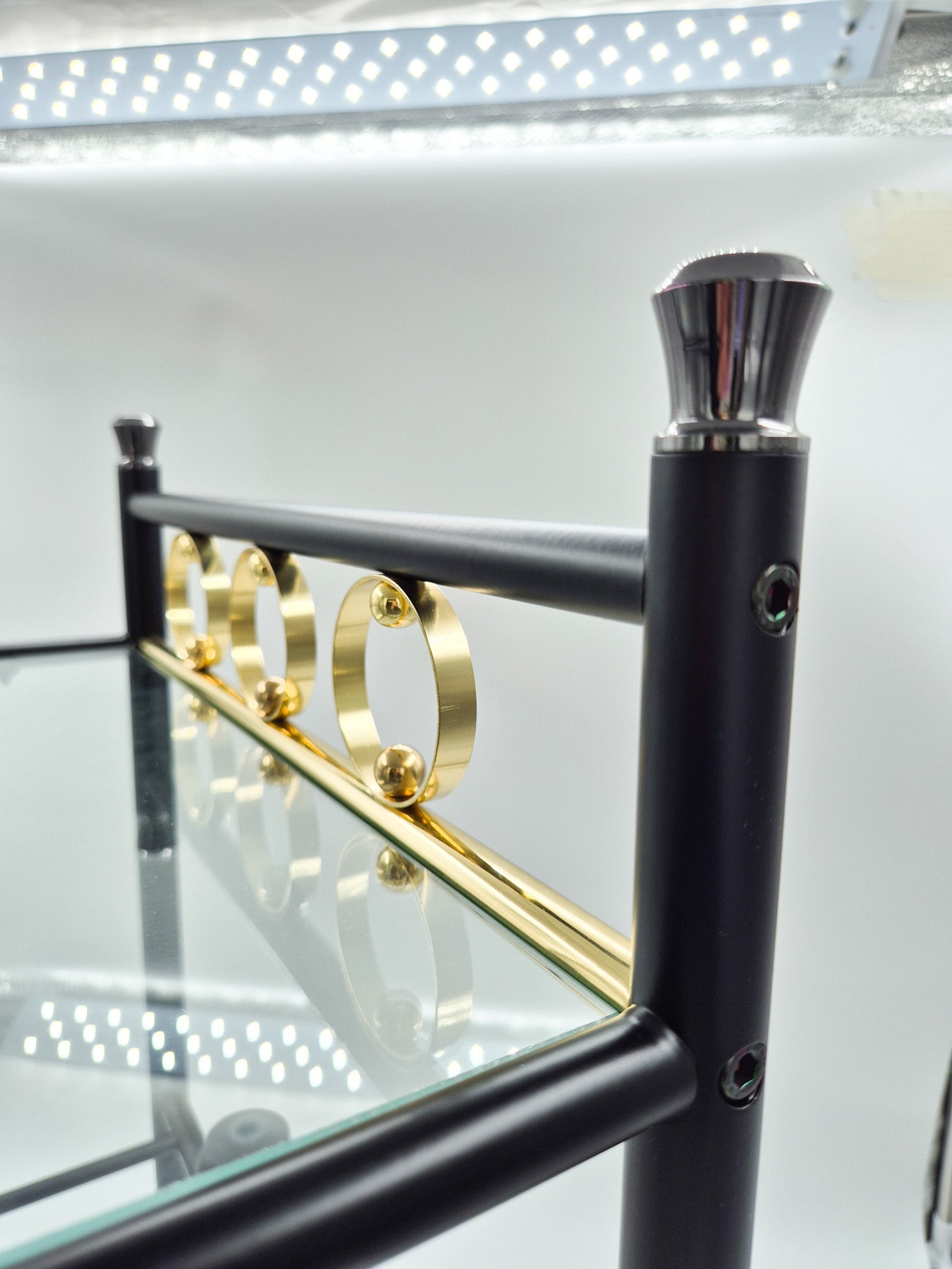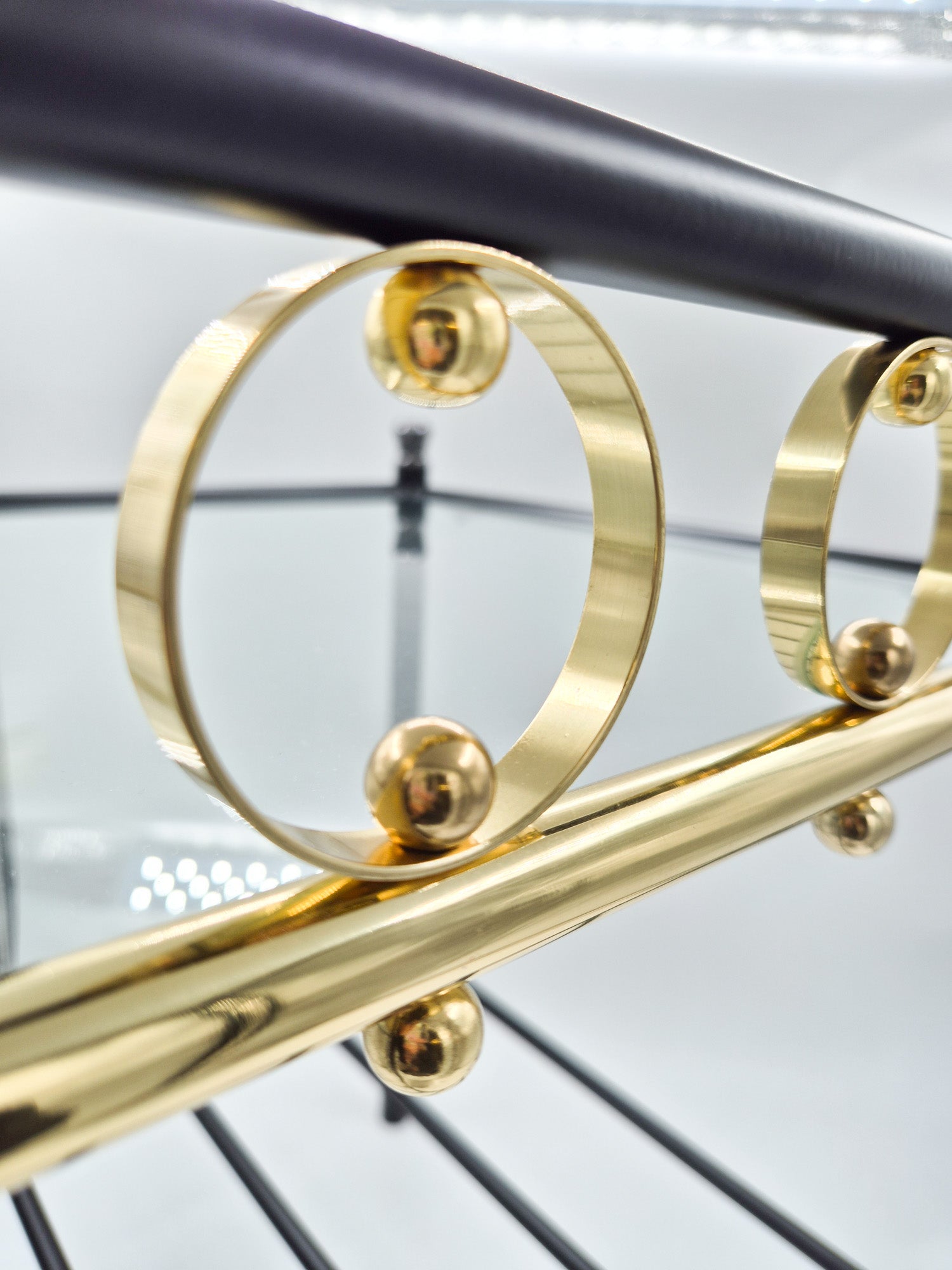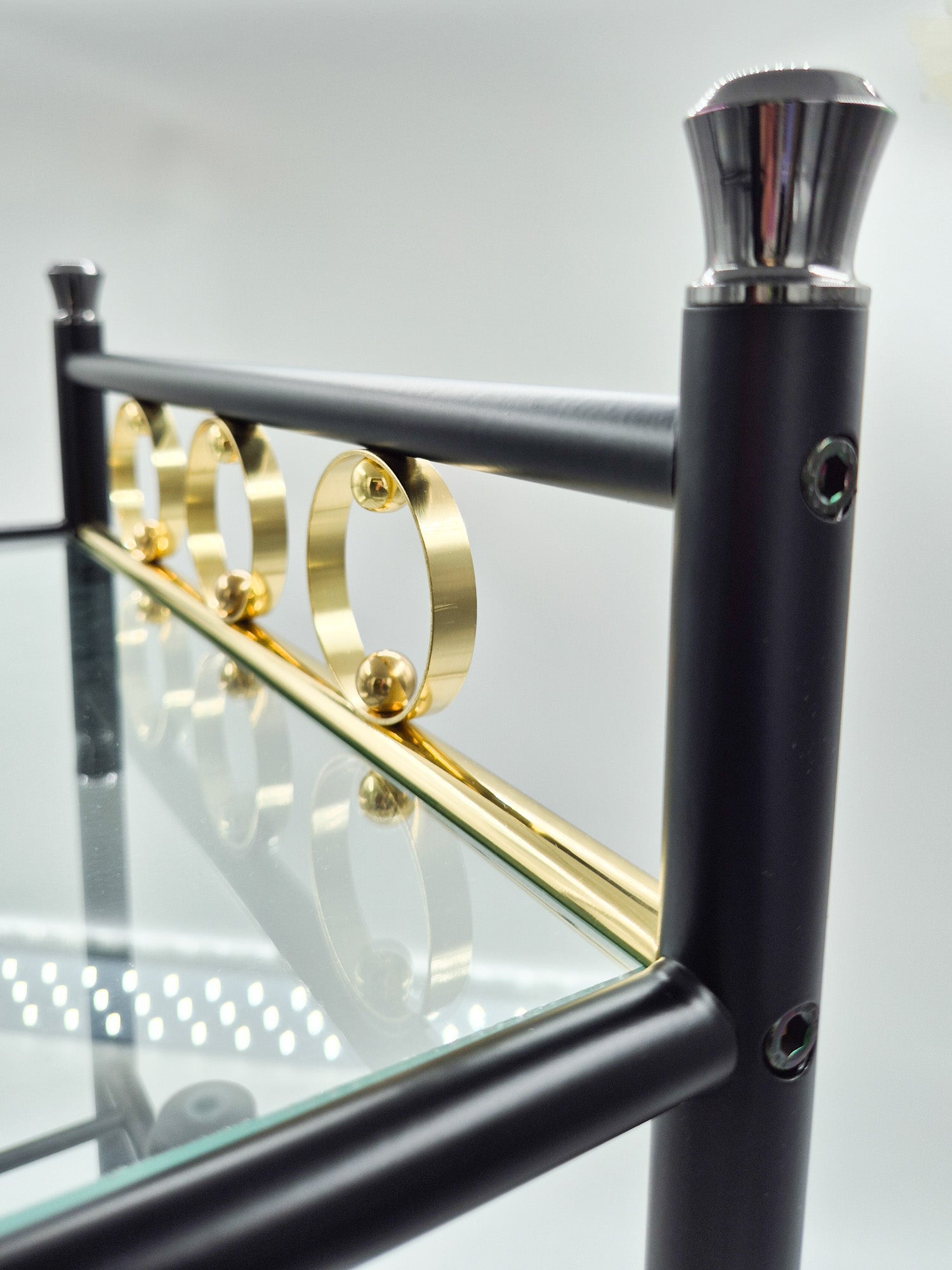Vintage Finnish Side Tables (Pair) – Black Metal, Glass & Brass