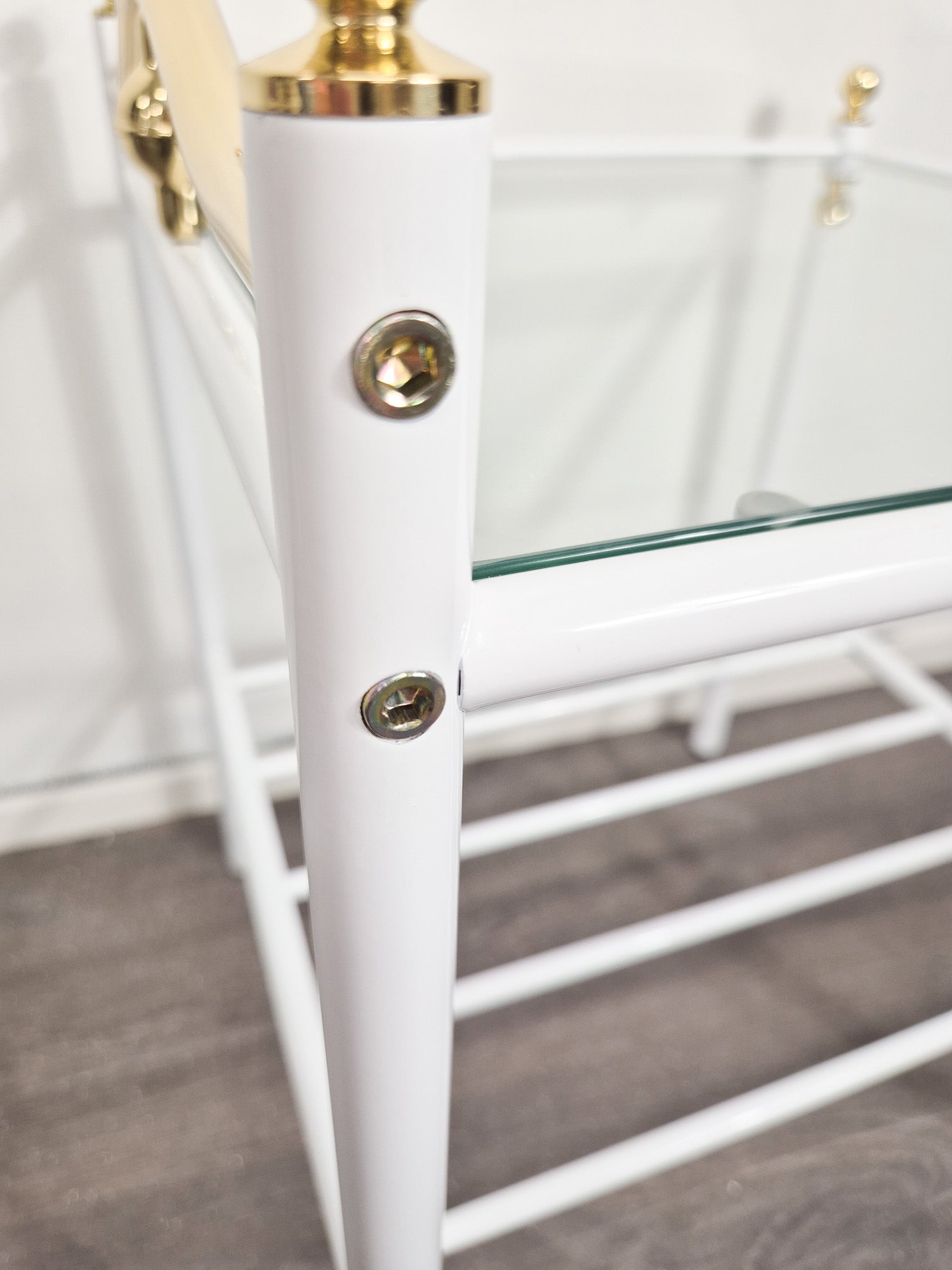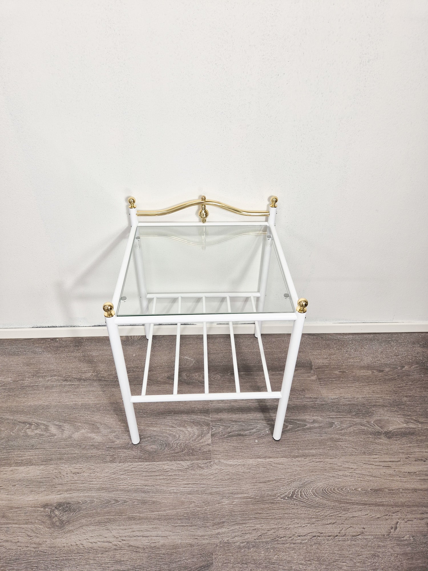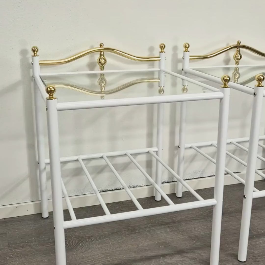 Vintage Finnish Side Tables (Pair) – White Metal, Glass & Brass Details