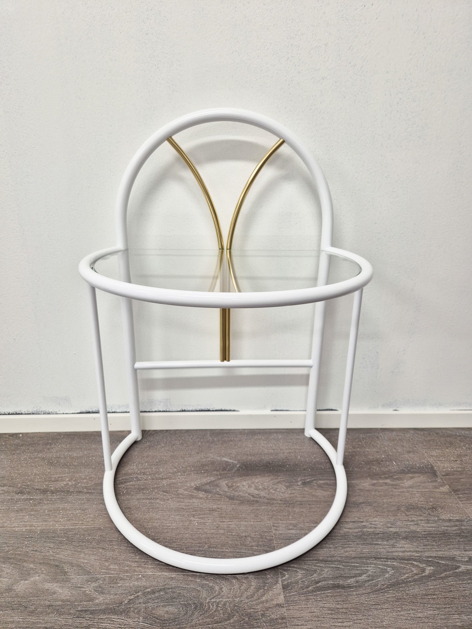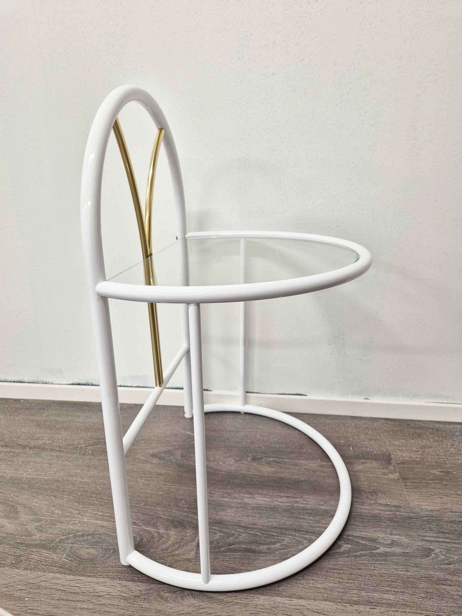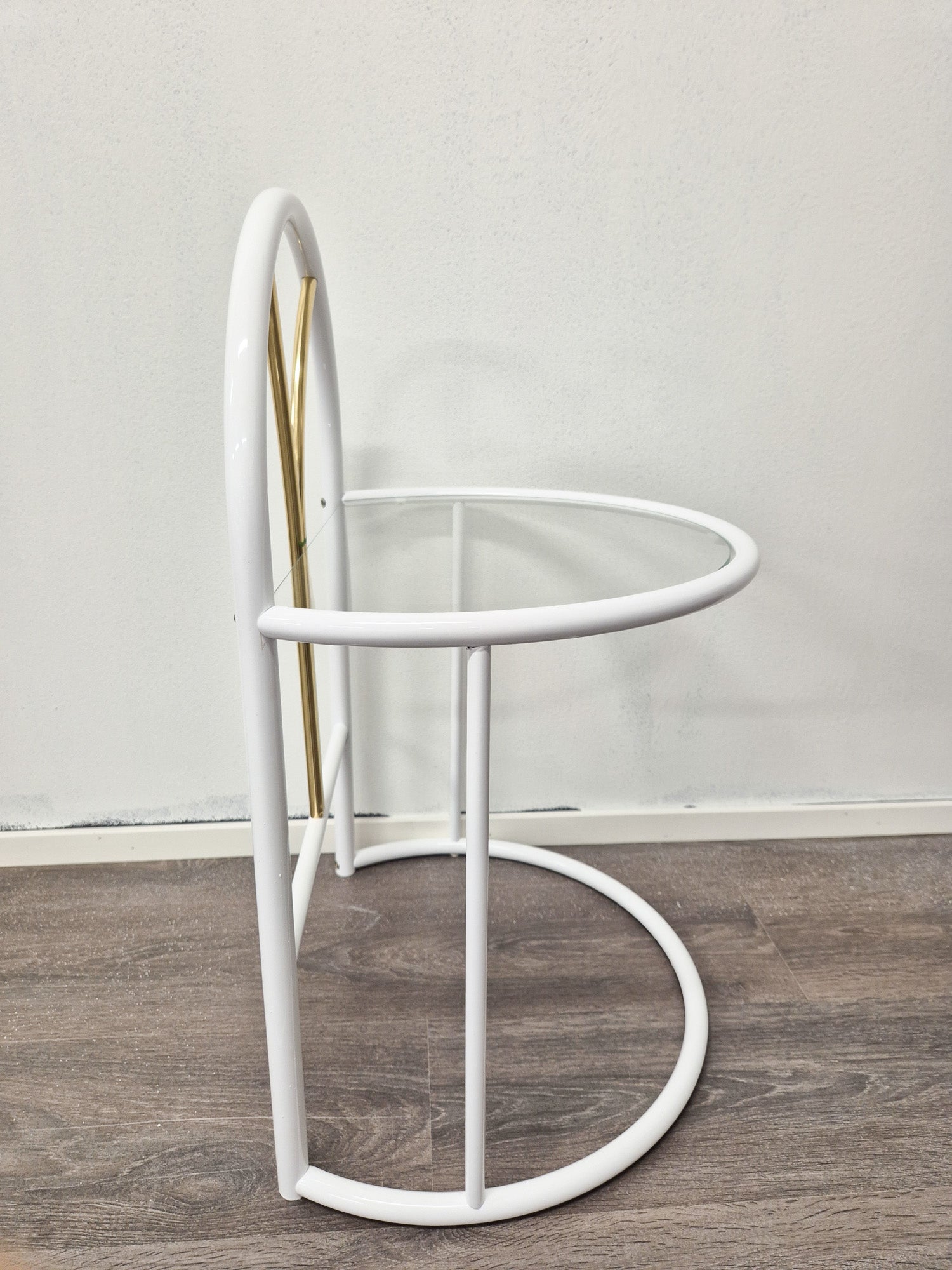 Vintage Finnish Side Tables (Pair) – White Metal, Glass & Brass | Messin Oy