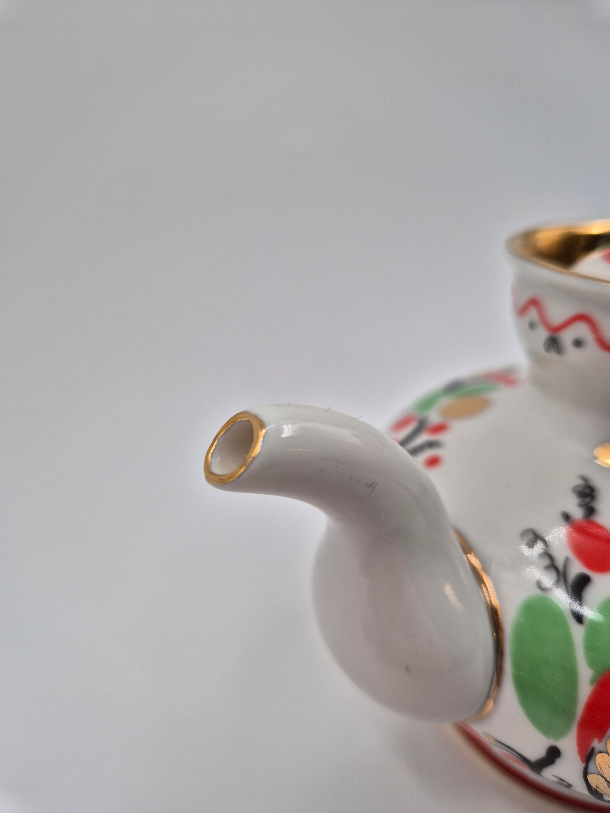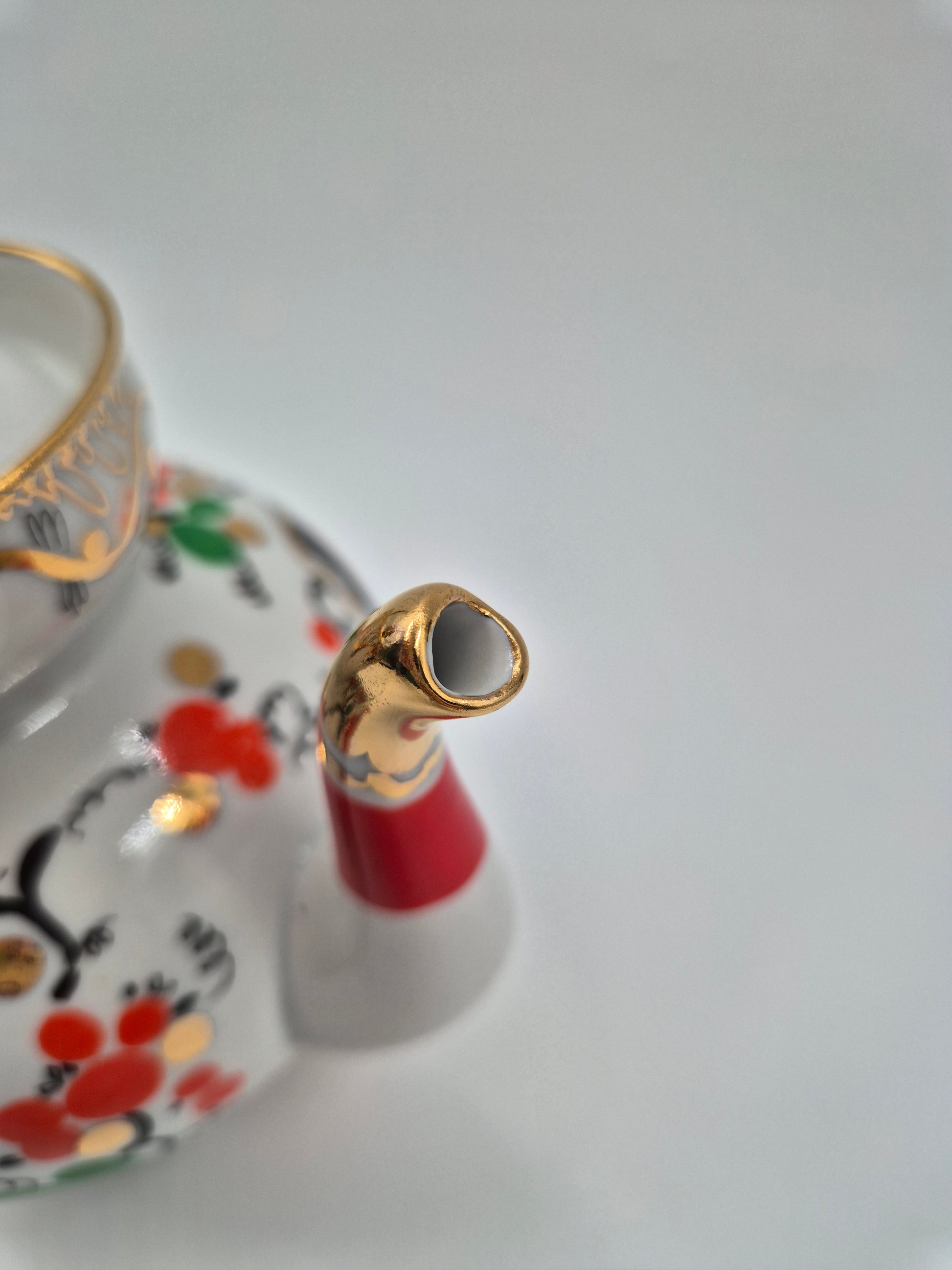 Serve tea with elegance and history using this Vintage Lomonosov Teapot in the iconic "Imperial Rooster" pattern. Crafted by the esteemed Lomonosov Porcelain Factory in Russia, this teapot features a beautifully hand-painted design with rich gold accents and bold cobalt blue. A stunning piece for collectors or those who appreciate fine, imperial-era inspired porcelain.