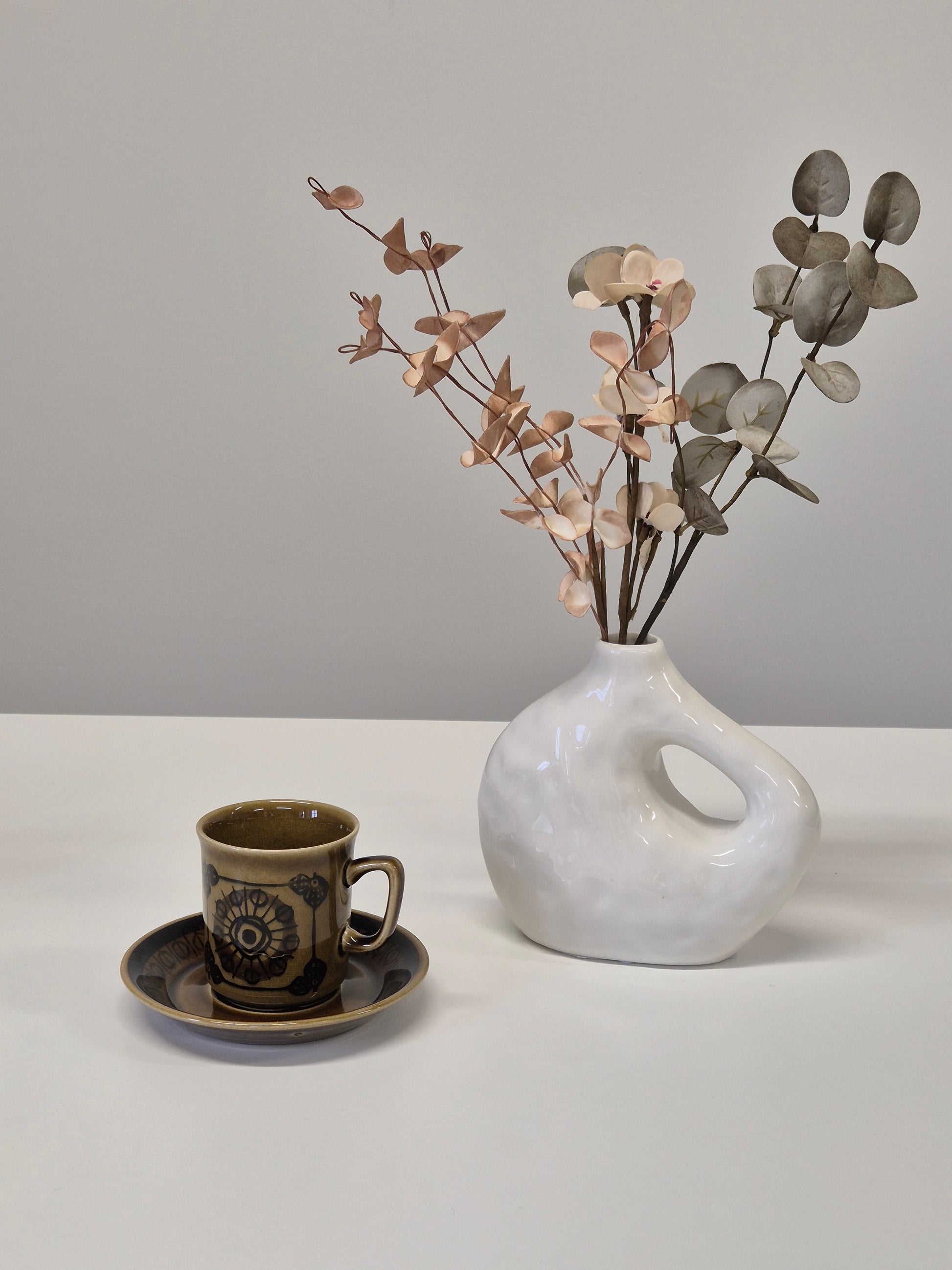 Enjoy your tea or coffee in style with this Vintage Stavangerflint Cup and Saucer, a beautiful example of Norwegian mid-century ceramics. Known for its quality craftsmanship and charming designs, Stavangerflint pieces are collectible favorites. This set features classic lines and a timeless aesthetic that complements any vintage tableware collection.